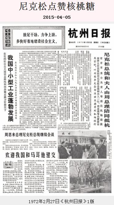 不過,尼克松先生送給杭州一棵紅杉樹,還點贊過杭州小吃核桃糖,倒是來不得半分穿鑿附會,此事有著許多人做旁證。